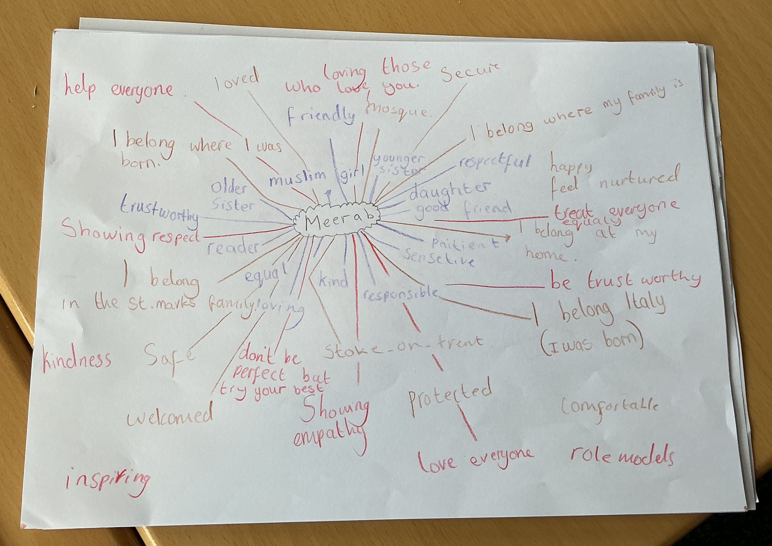 We created spider diagrams that were colour coded to each of the three questions about ourselves, before discussing our suggestions.