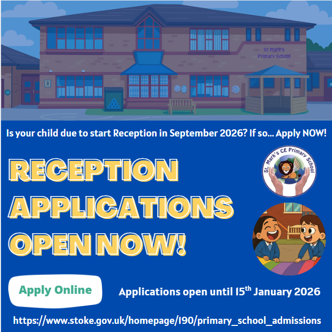 Applications are now OPEN for Reception September 2026!! - Please visit Primary School Admissions | Stoke-on-Trent to make an application before 15th January 2026.