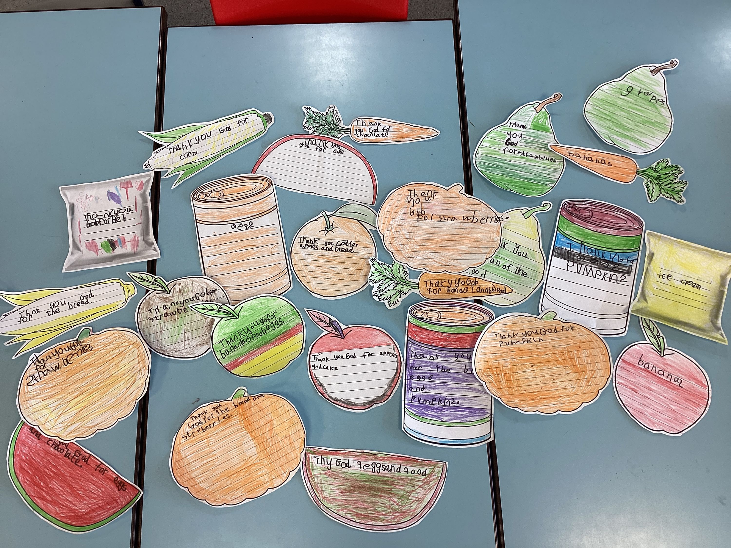 The children learned that Christian’s celebrate Harvest. They celebrate by praying and singing and also by collecting food for those that are less fortunate.