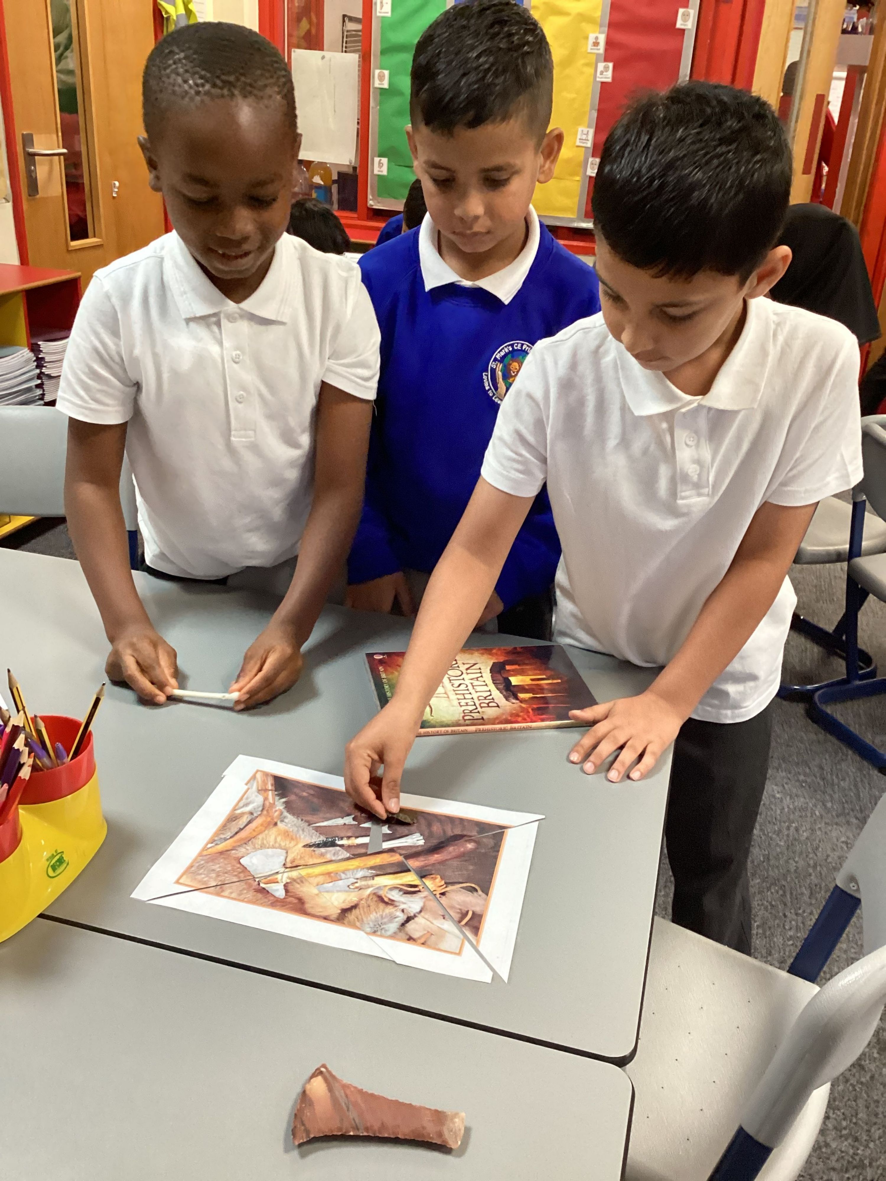 To introduce our new history topic, this half term, children explored different Roman artefacts, put back puzzle pieces of ancient Roman pictures and tried on clothing similar to what Roman people would have worn. See more pictures in the photo album.