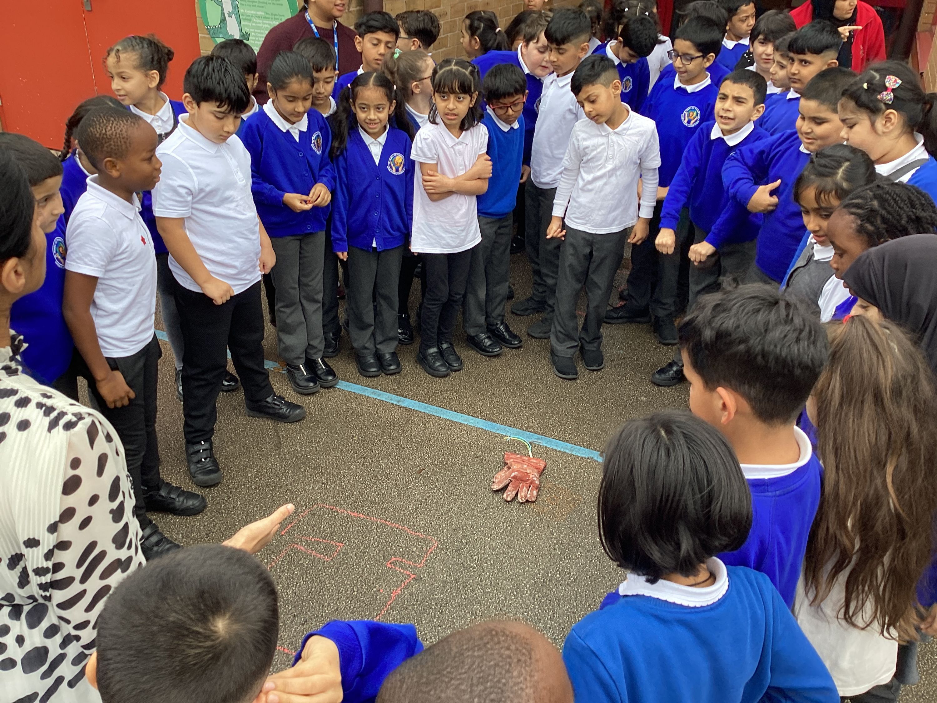 To immerse the children in our new text, a mysterious creature unexpectedly landed on our playground! The children were full of excitement and curiosity as they explored the different body parts that had been discovered and shared their ideas about what the creature might be. Using their imaginations, they drew their own versions of the creature and used fantastic descriptive language to bring their ideas to life. It was a wonderfully creative and engaging start to our new learning journey! There are more photos in our photo album.