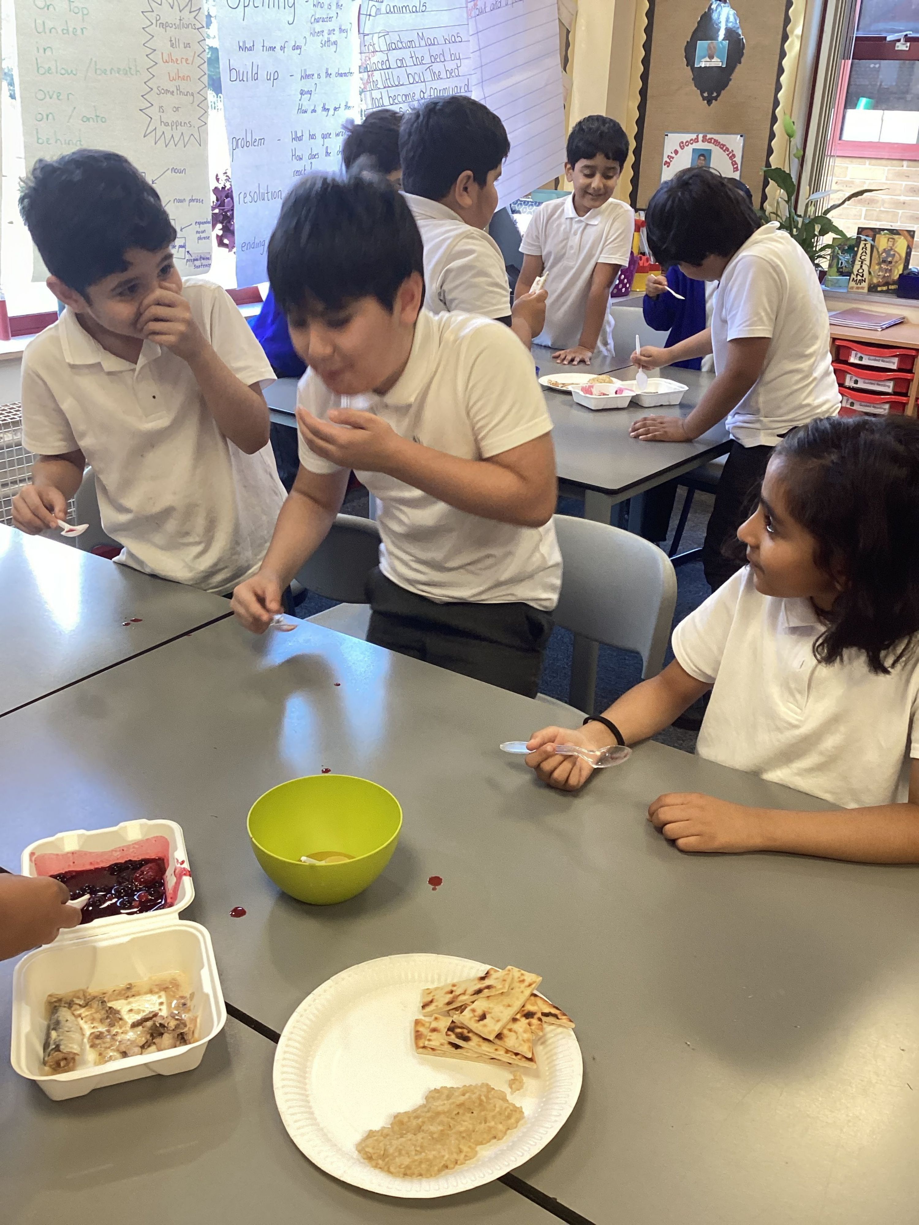 Year 3 have stepped back in time and experienced life as Early Britons by trying a Stone Age meal! The children tasted foods people might have eaten thousands of years ago, including fish, porridge, berries, honey and flat bread. We thought about how Stone Age people hunted, gathered and prepared their food, and what it might have been like to live without shops or modern cooking. There are more photos in our album.