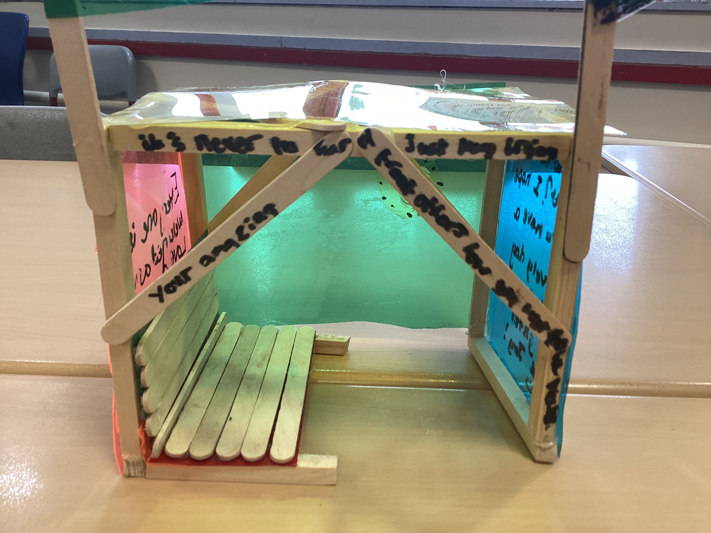 During DT week, Year 5 were creating frame structures. We were given the brief to create bus shelters for the people of Shelton. Our inspiration was the artist, Morag Myerscough, who creates vibrant, inviting structures that range from bandstands to stage and even play areas. After planning out our designs, we worked in groups over several days to measure, cut, glue and finally decorate our creations. We all worked really hard and are incredibly proud of our work. There are more photos in our photo album.