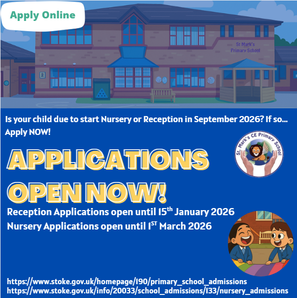 Applications for Nursery for September 2026 are also now open. - Please visit Nursery admissions | Nursery admissions | Stoke-on-Trent to make an application before 1st March 2026.