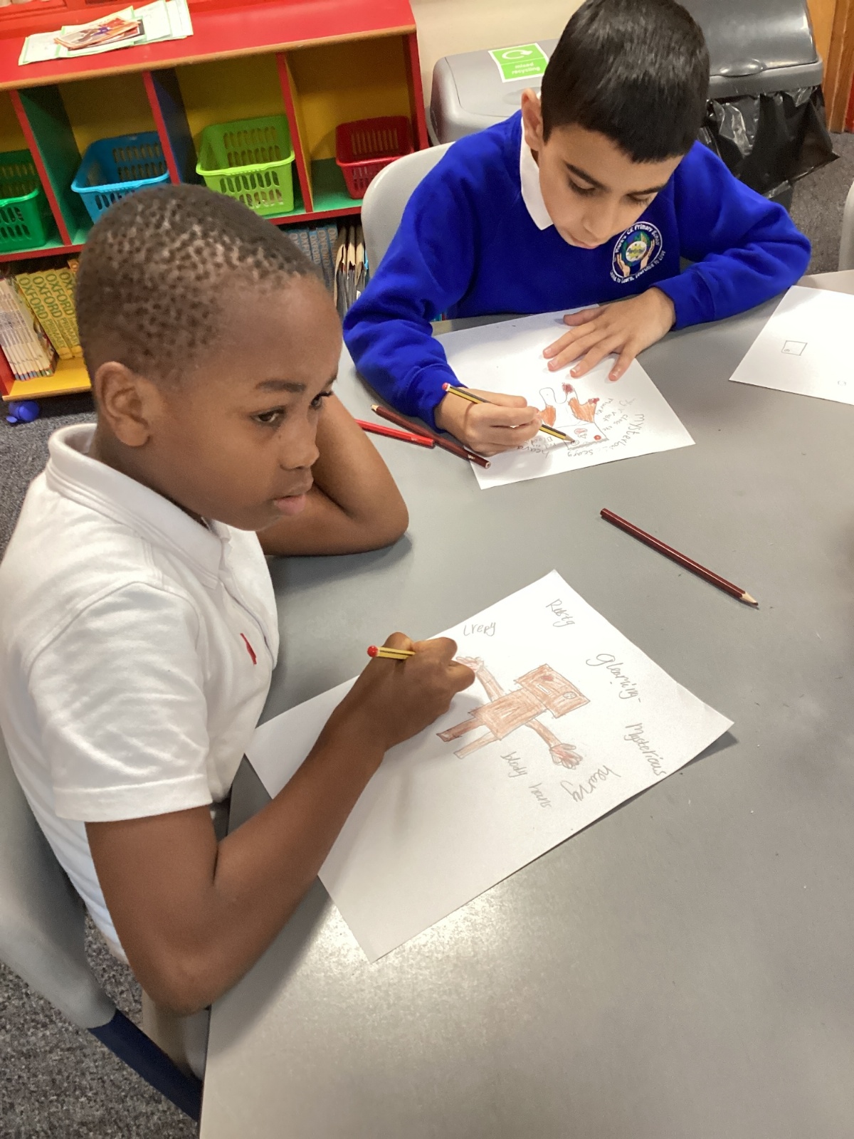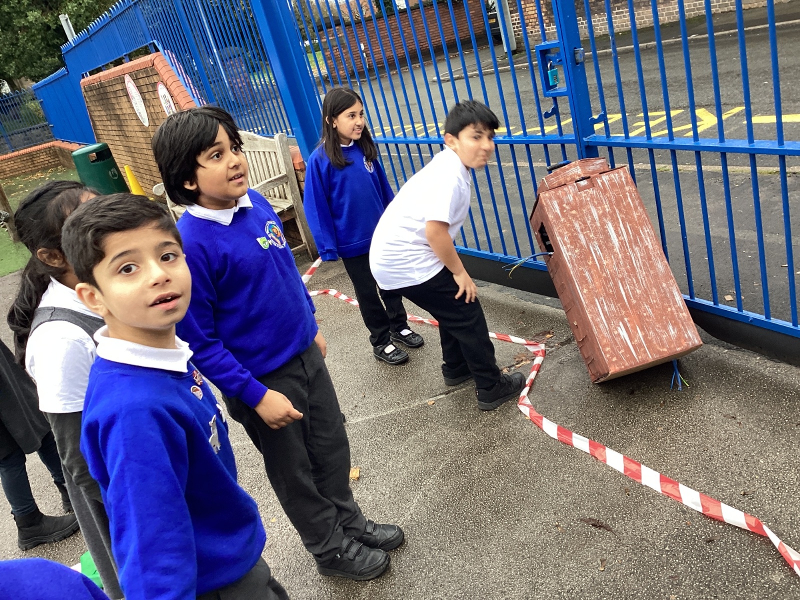To immerse the children in our new text, a mysterious creature unexpectedly landed on our playground! The children were full of excitement and curiosity as they explored the different body parts that had been discovered and shared their ideas about what the creature might be. Using their imaginations, they drew their own versions of the creature and used fantastic descriptive language to bring their ideas to life. It was a wonderfully creative and engaging start to our new learning journey!