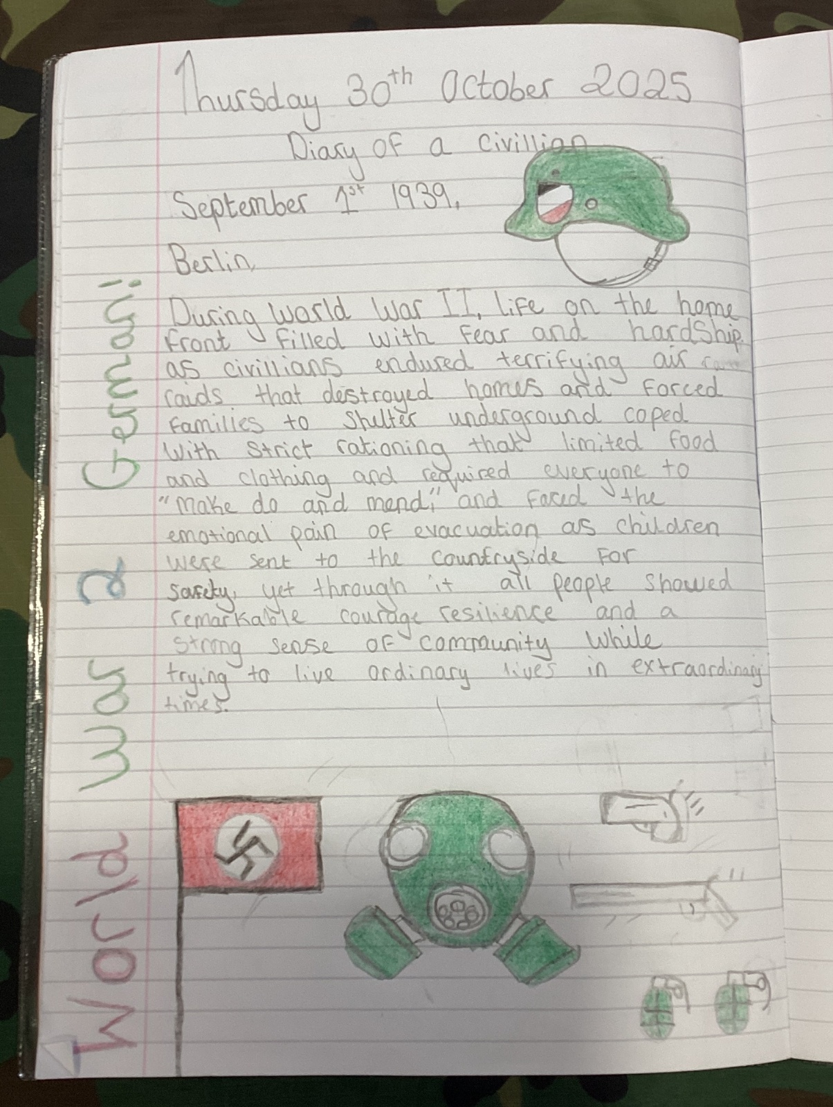 We have had some wonderful half term homework projects returned to us in 6K. Ranging from letters and diaries of civilians, to model shelters and aircraft; we have even had some wartime propaganda posters! It is clear that the children have put a lot of effort into this project. Well done!