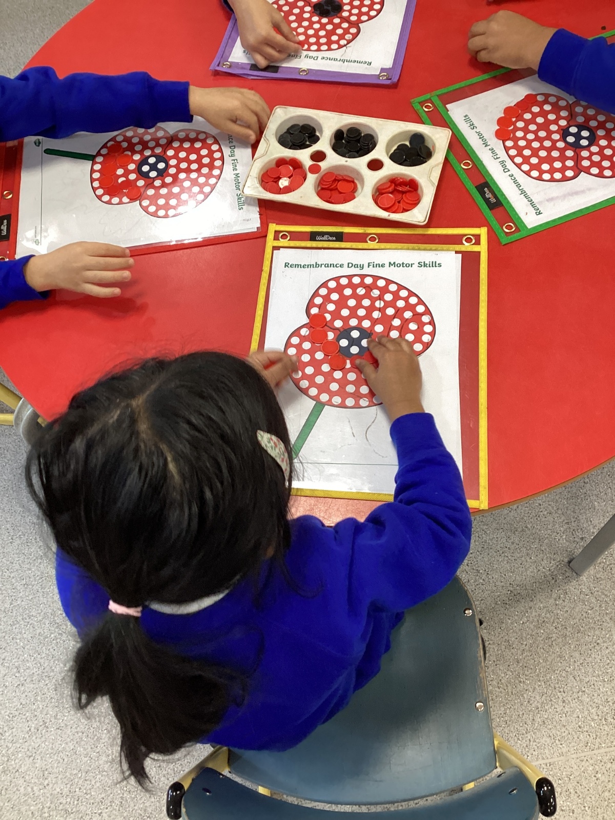 We took a moment to honour Remembrance Day with beautiful poppy crafts using counters and enjoyed some scrumptious poppy-themed biscuits thanks to Mrs Baggaley.