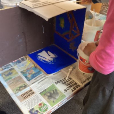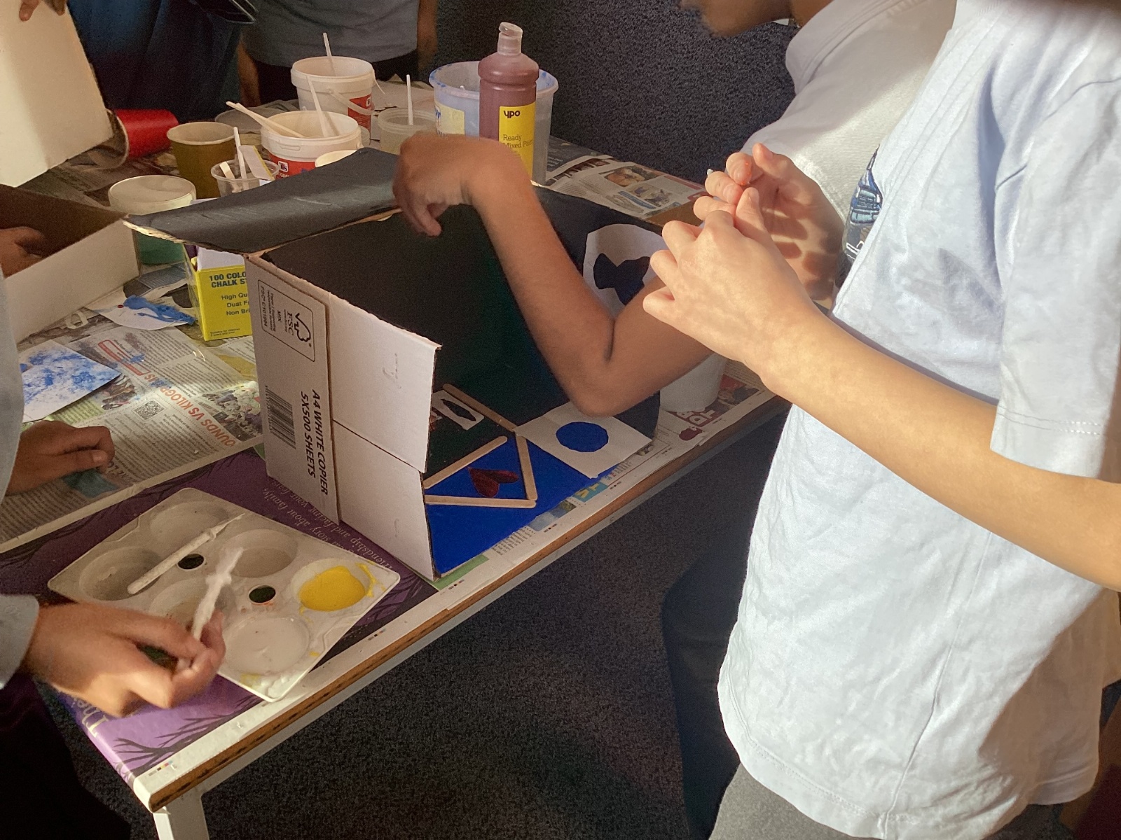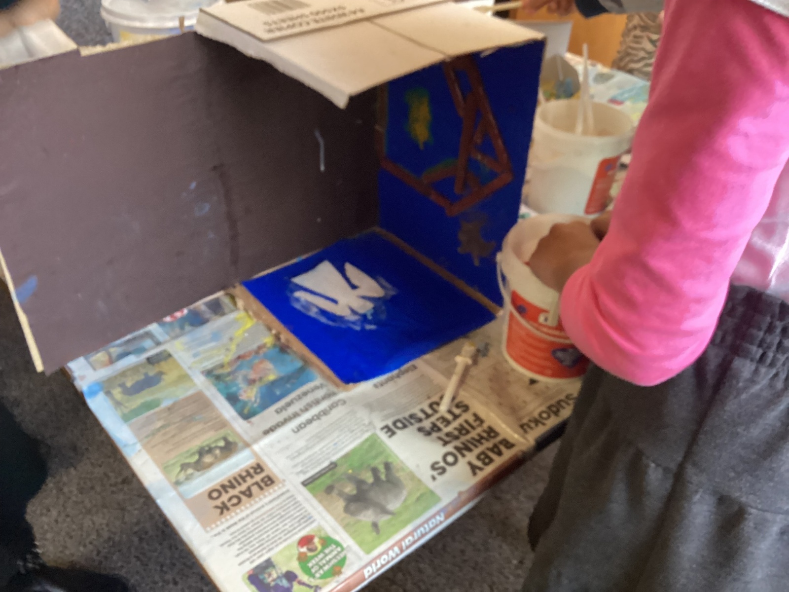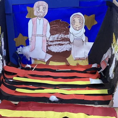 We tried using these techniques with stencils to create our own mini nativity scenes whilst experimenting with space and scale.