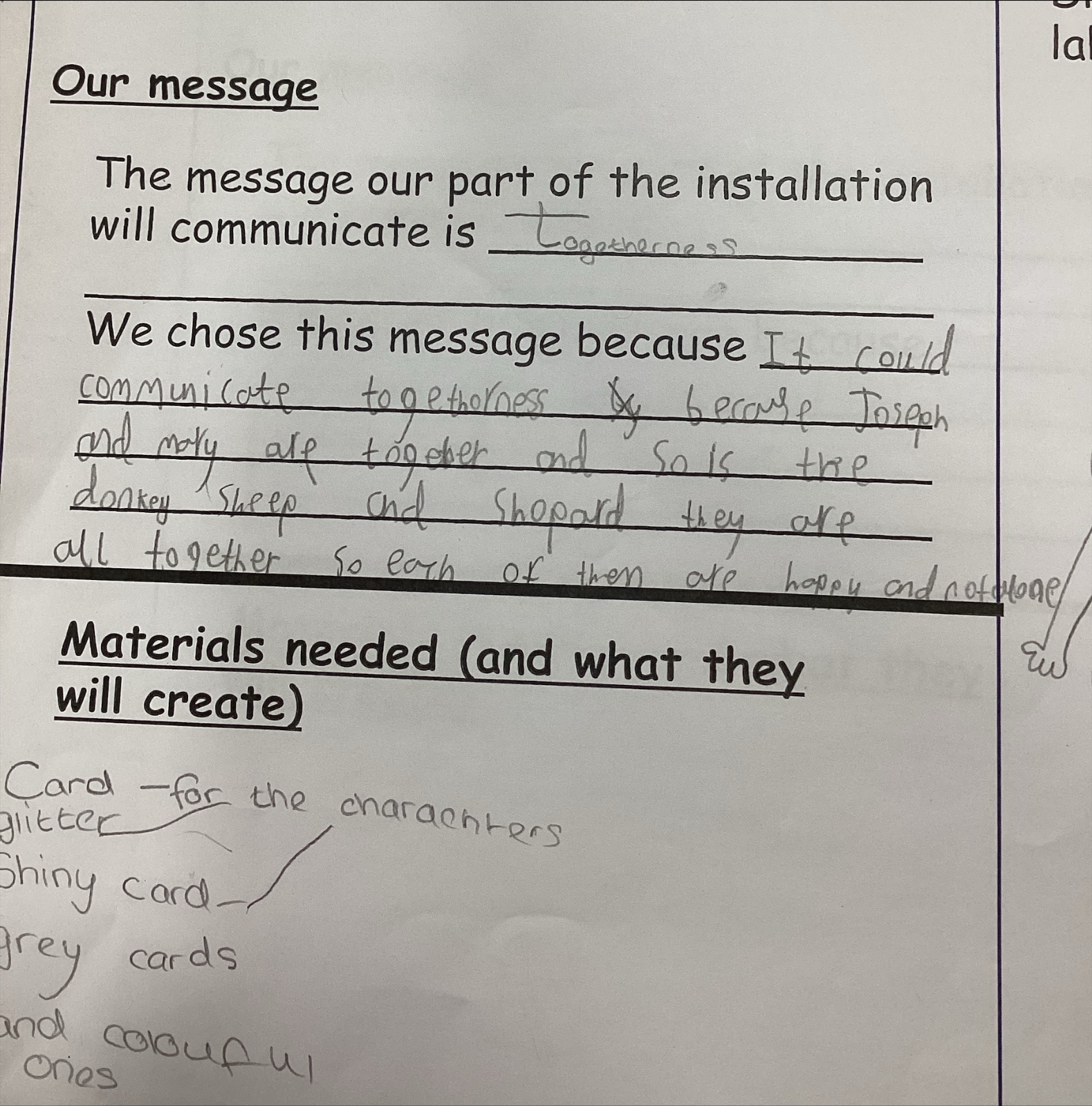 Finally, we designed a class installation around the Nativity bringing all our ideas together.