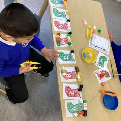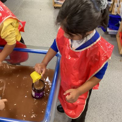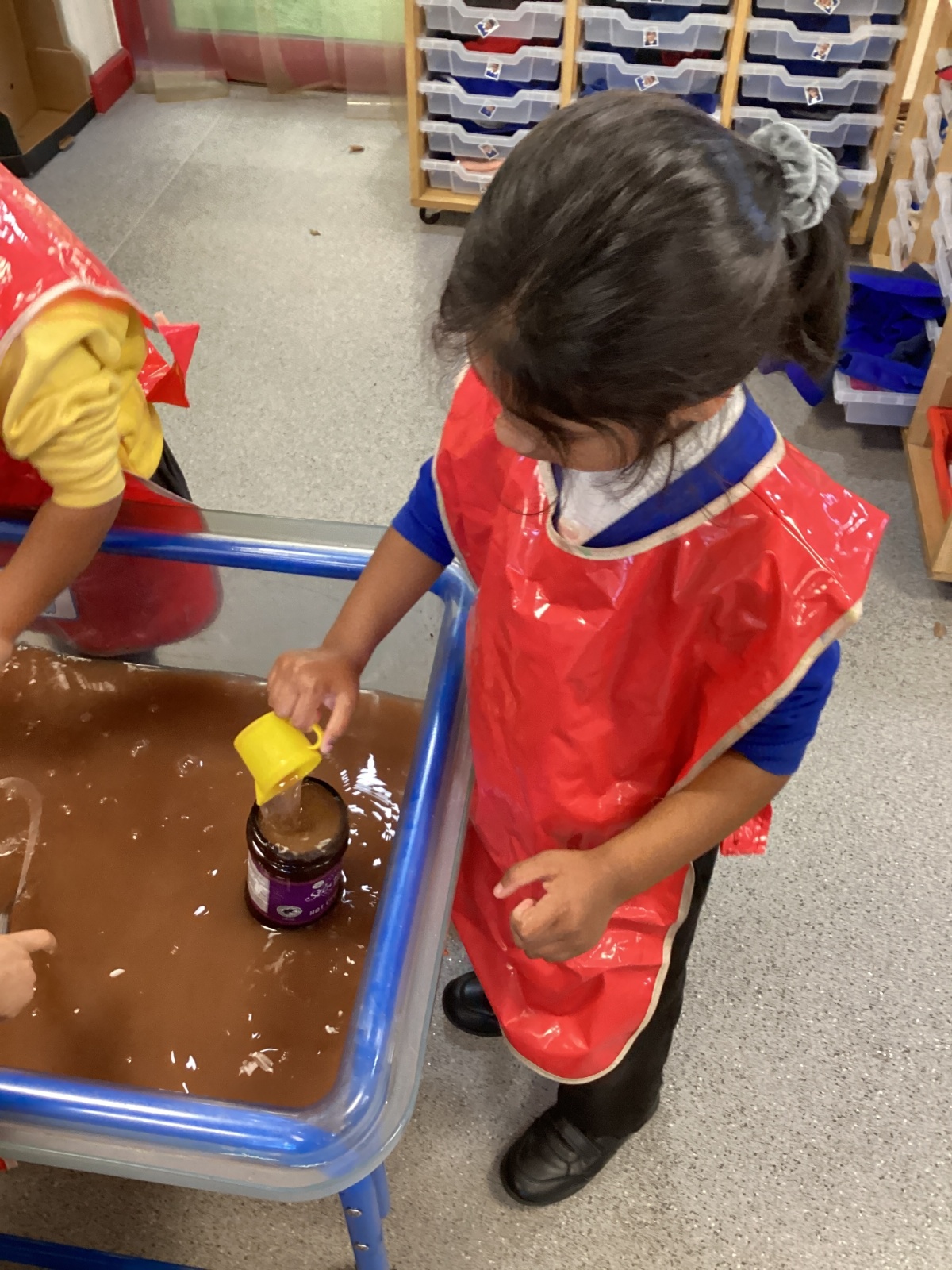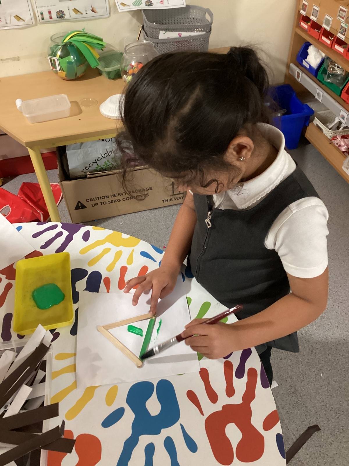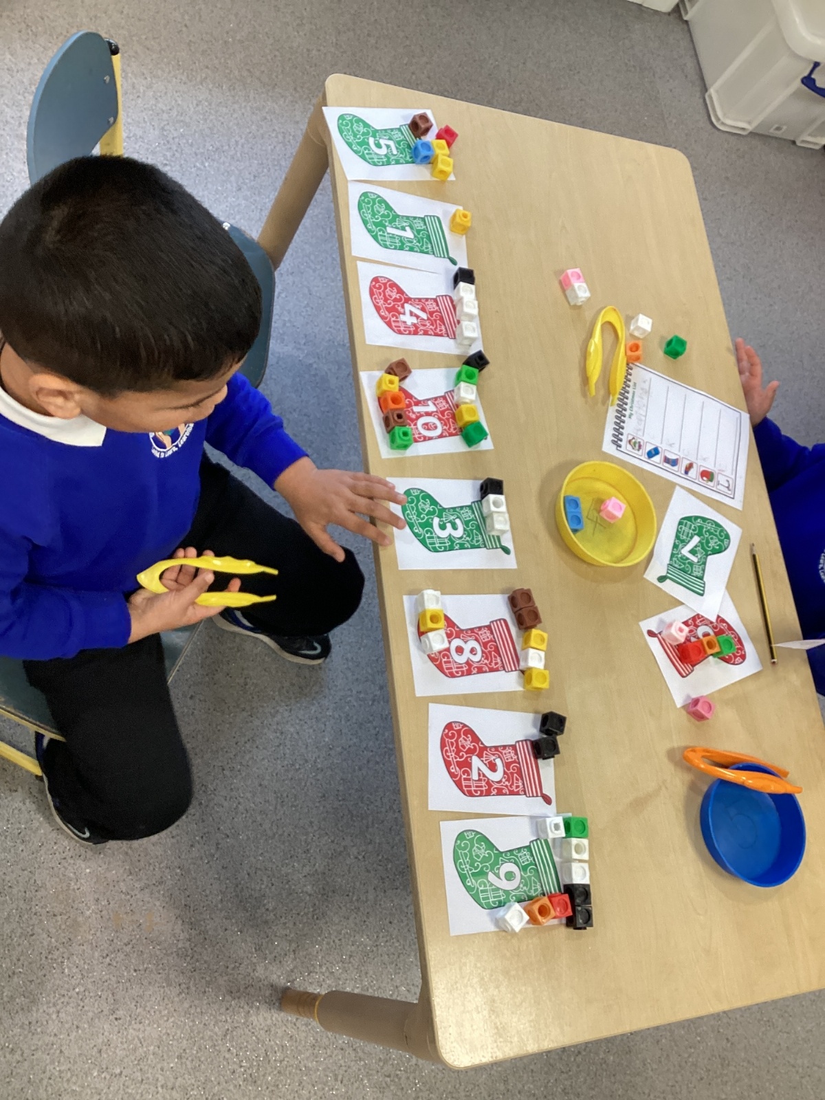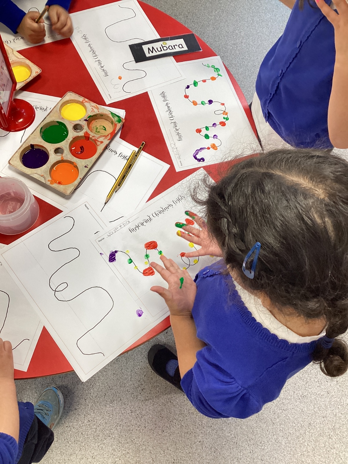 In maths, we explored shapes by sorting them and using them to create pictures. In the water area, we whipped up some delicious hot chocolate for Santa, and we even practised our wrapping skills by helping him prepare presents.