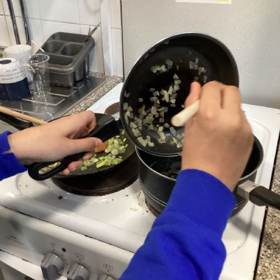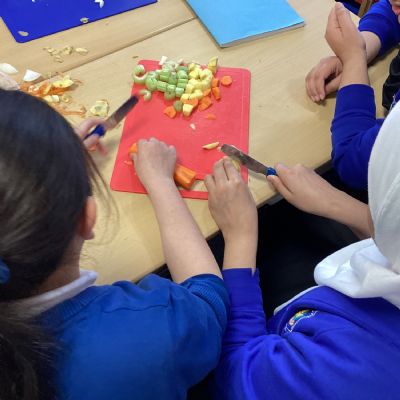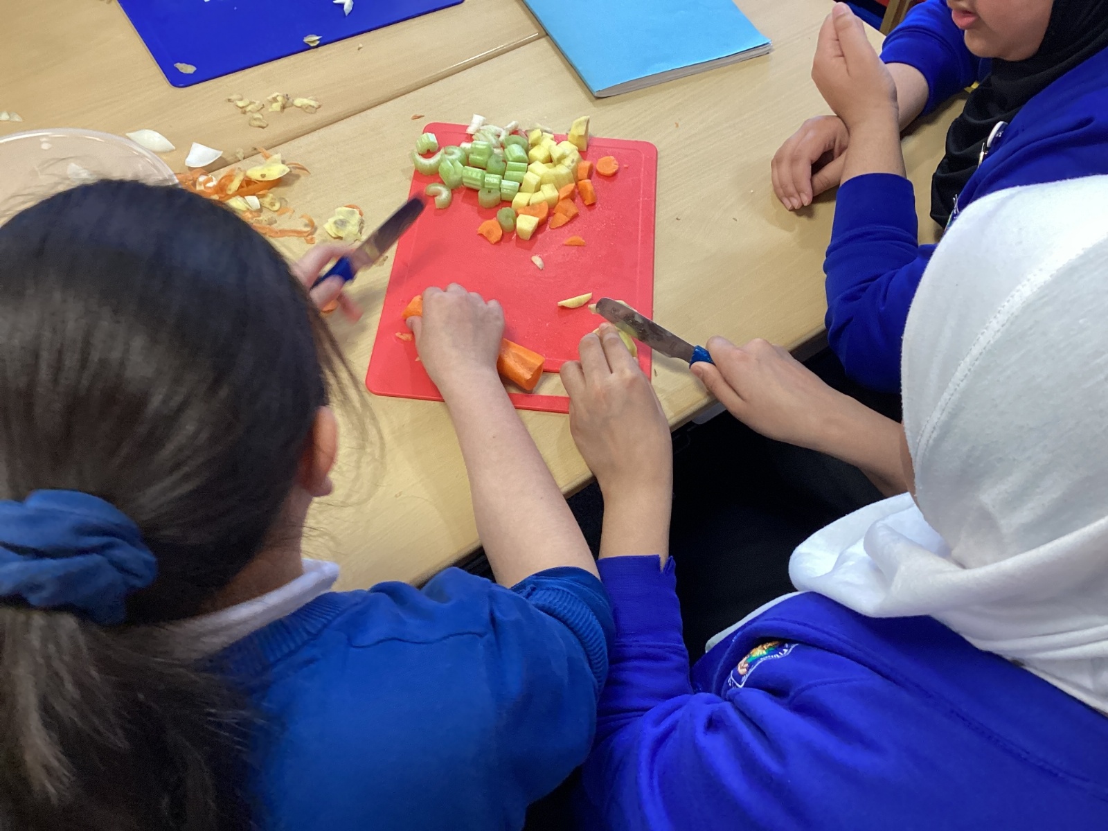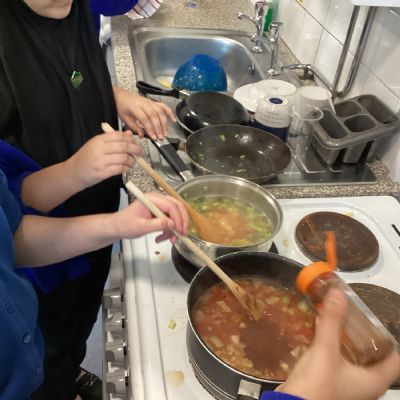 During DT week, 6K worked in groups to design a new soup recipe that would be suitable for a vegetarian diet. The children worked well together to prepare and cook vegetables, before making design choices about whether the soup should be smooth or lumpier. Some delicious new products. Well done 6K!