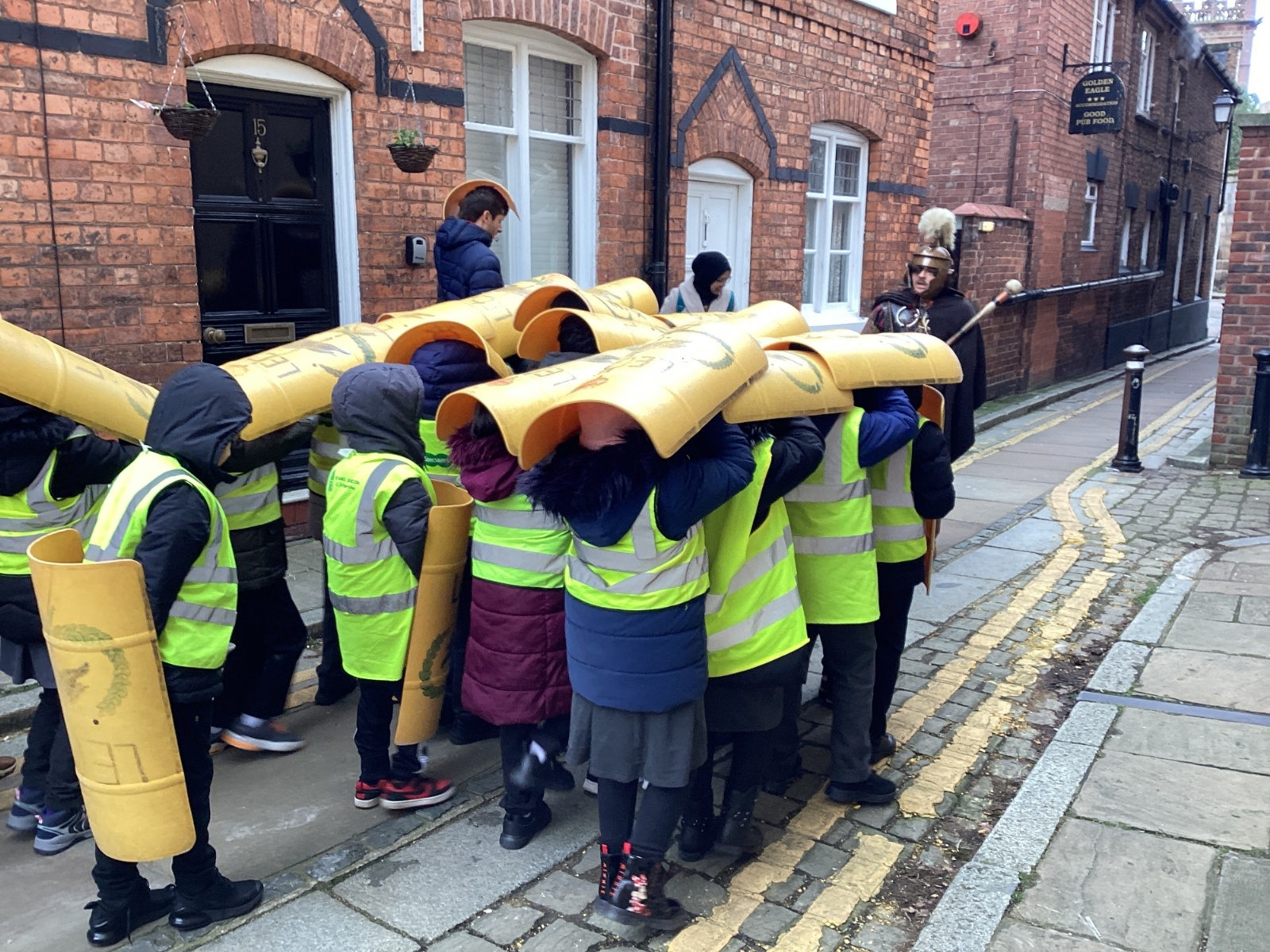 On our trip to Chester, we learned about Roman Britain and what life was like for Roman soldiers. The children dressed as Roman soldiers and worked together to form a tortoise to protect themselves from the Celts. They experienced how Roman soldiers trained and lived. We took part in a workshop, where we examined real artefacts, and toured the museum to learn more about the Romans and their impact on Britain. It was an exciting day that helped bring history to life.