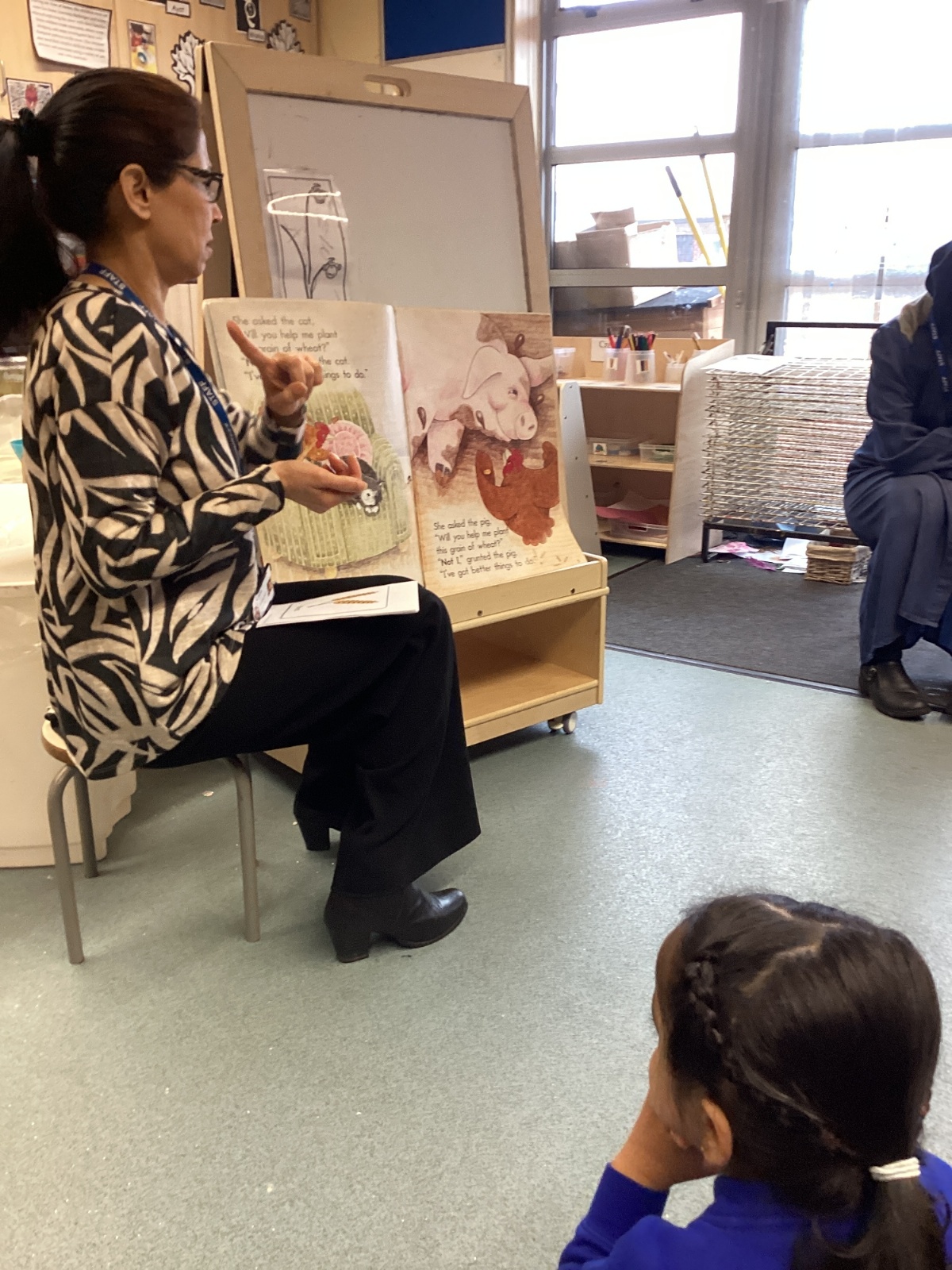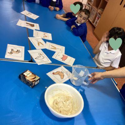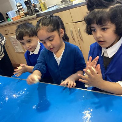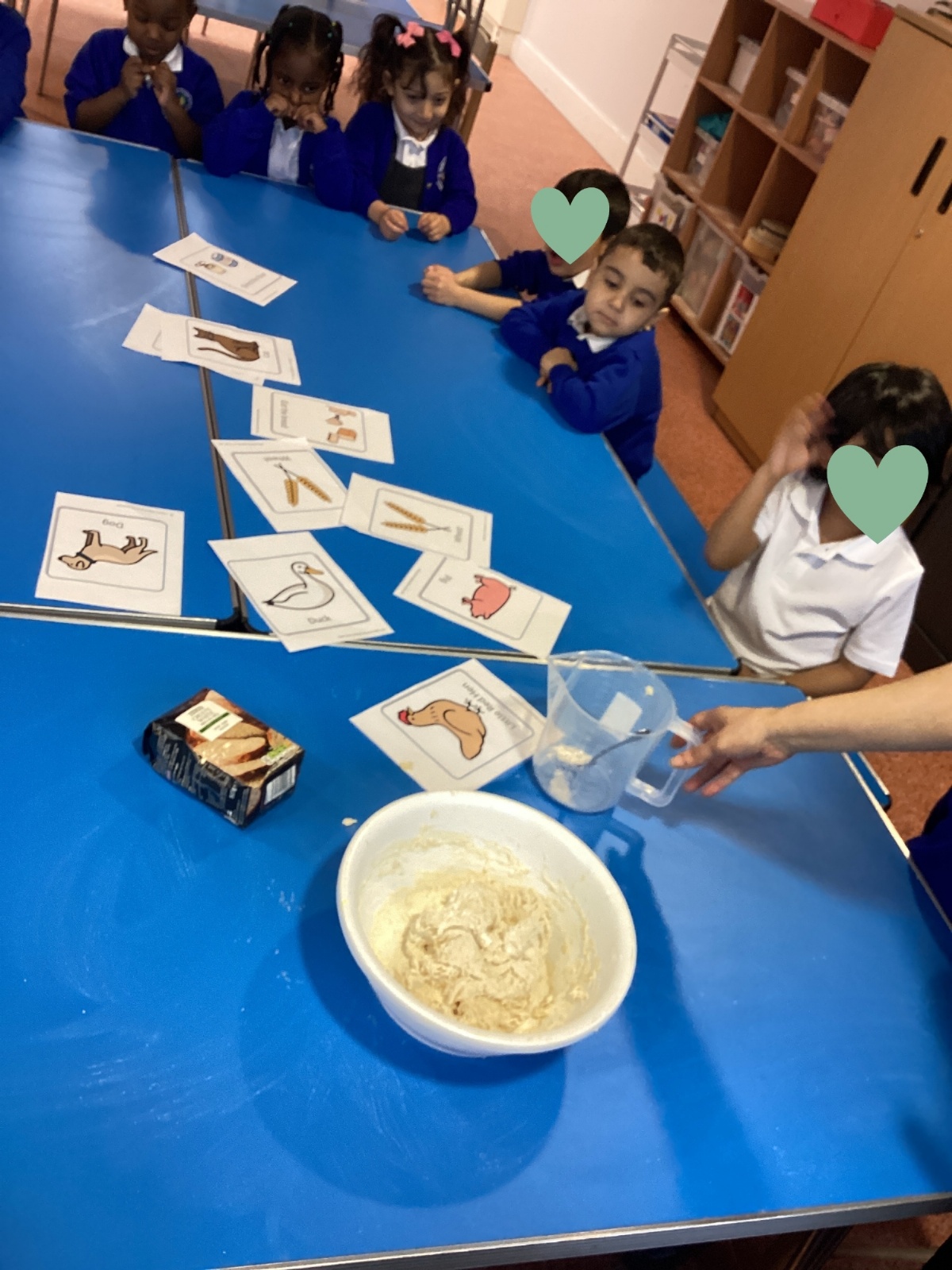 This week at Nursery, we read the story The Little Red Hen, which led to lots of exciting learning opportunities. At the start of the week, the children helped Mrs Razaq to make bread. They mixed the bread ingredients with water, kneaded the dough, and then rolled it into ball shapes, ready to be cooked.