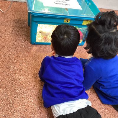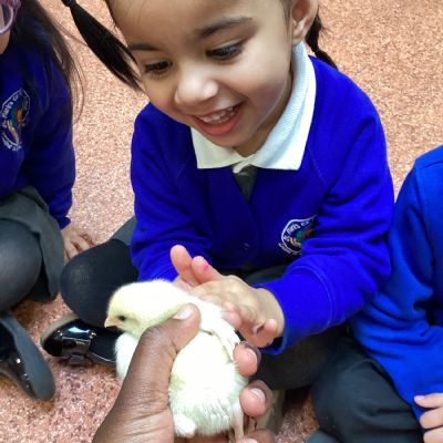 This week was also our Science Week. The focus for Science Week in Nursery was exploring how animals are similar and different and the theme for the week was Curiosity – What's Your Question? We were very fortunate to have a visit from four little chicks. The children were full of curiosity and asked lots of questions about how the chicks grow and change, and how they look different from the Little Red Hen in the story.