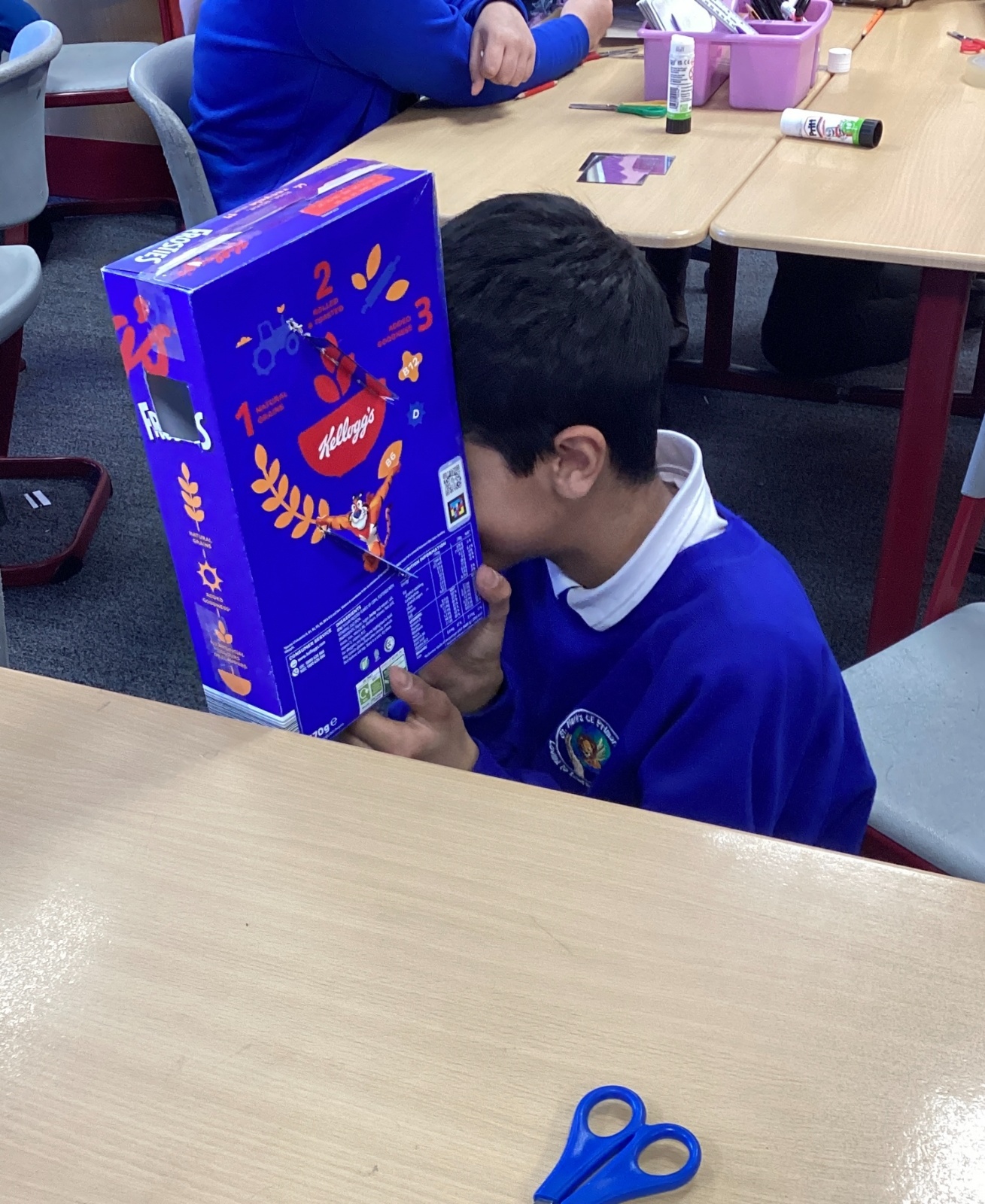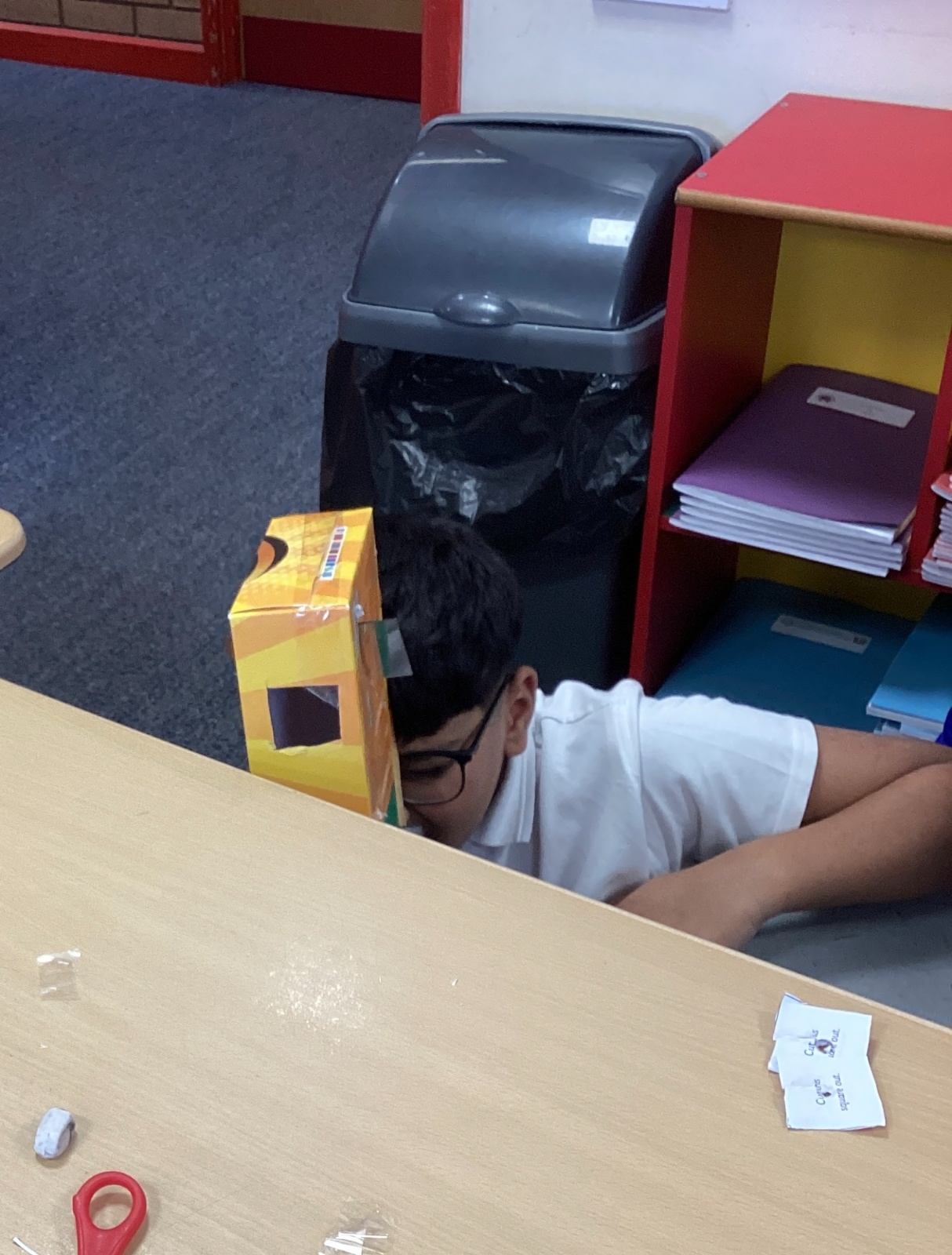 In science, 6K have been investigating reflection, thinking about how reflection can be used to see around corners. In order to understand this, the children made a working periscope before explaining how the use of two mirrors was enabling the image to be reflected in such a way that they could see things hidden around a corner.