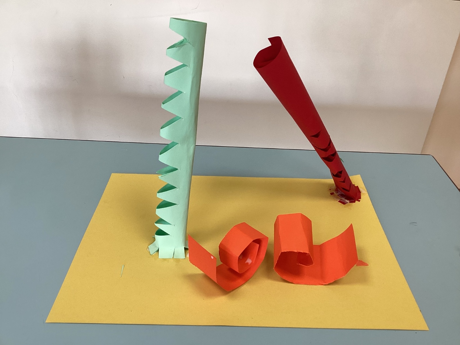 Year 1 have been artists! They have been creating 3D sculptures out of paper. They have learnt how to bend, roll, fold and twist paper to make different shapes. Once they had created their shapes they learnt how to make tabs in order to stick them to a base. Take a look at some of their creations...