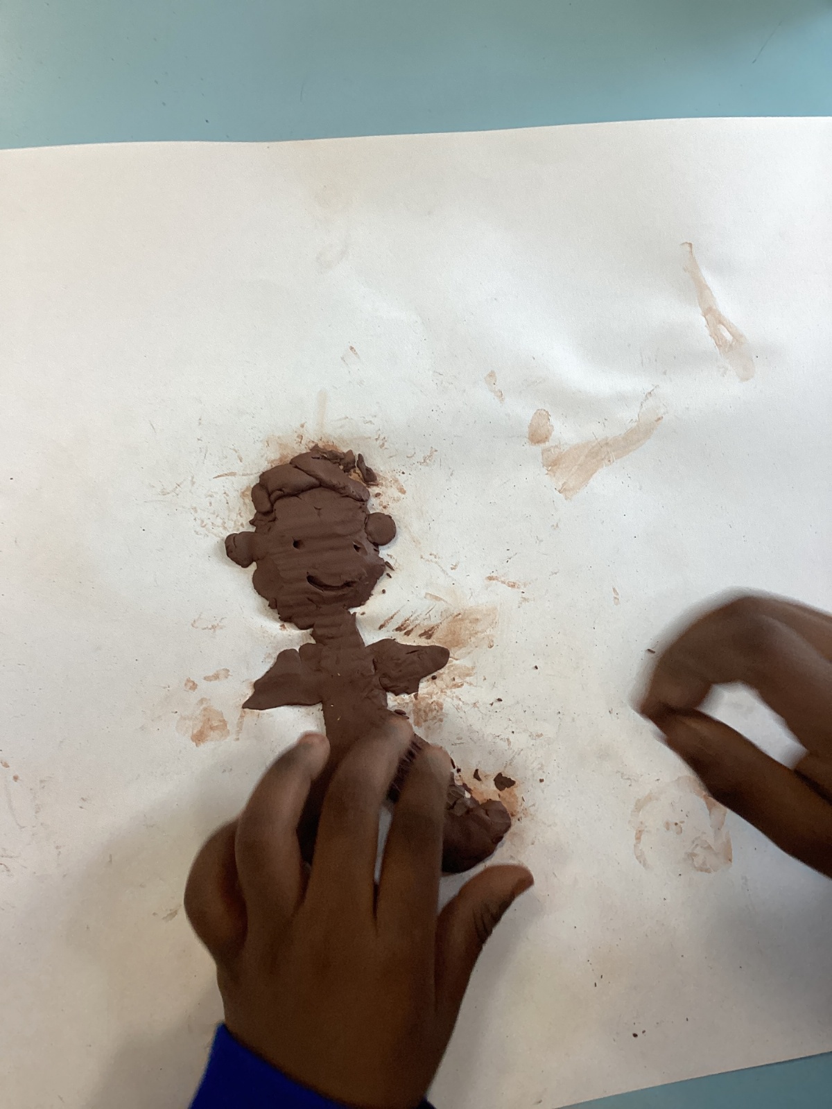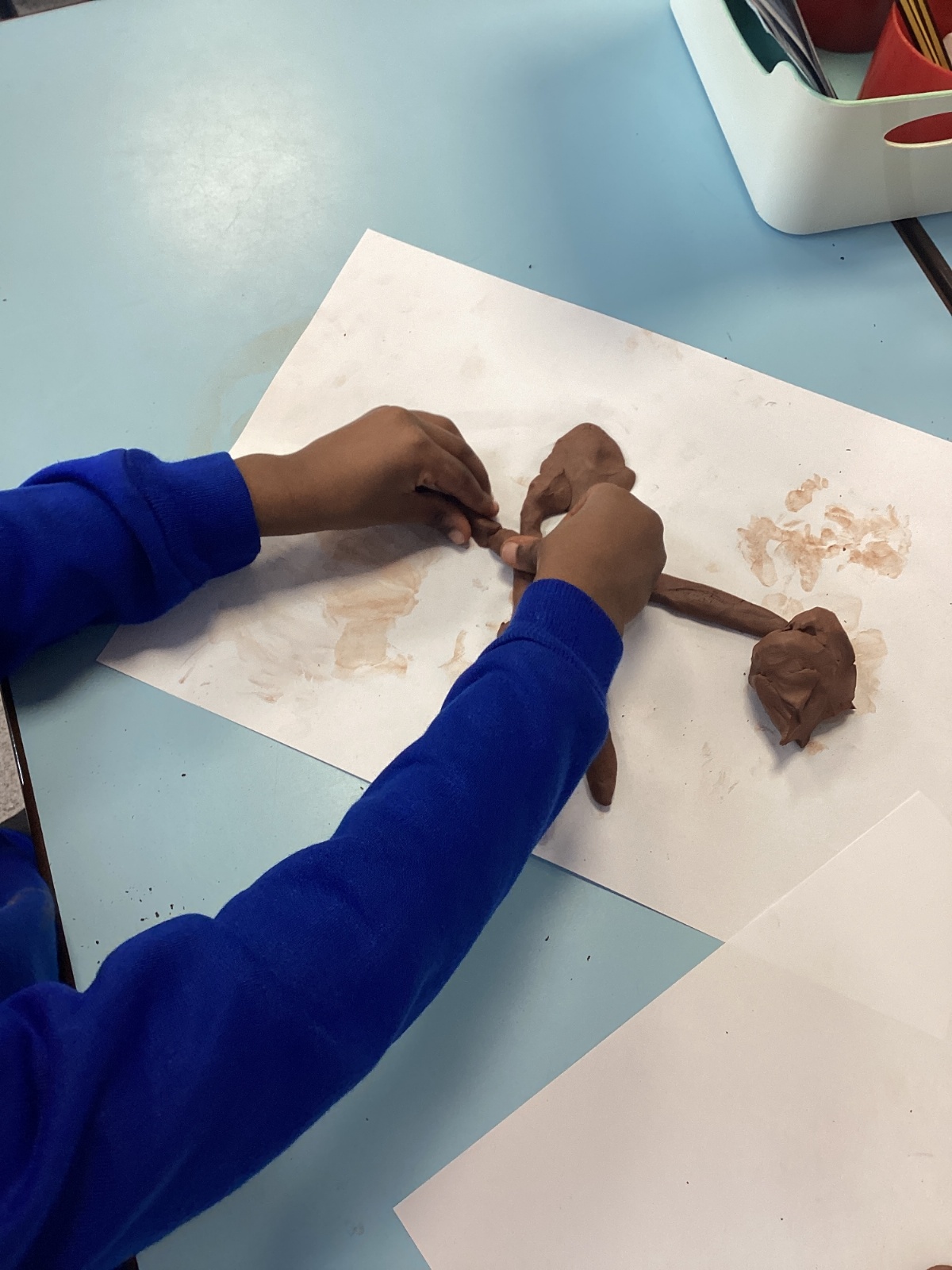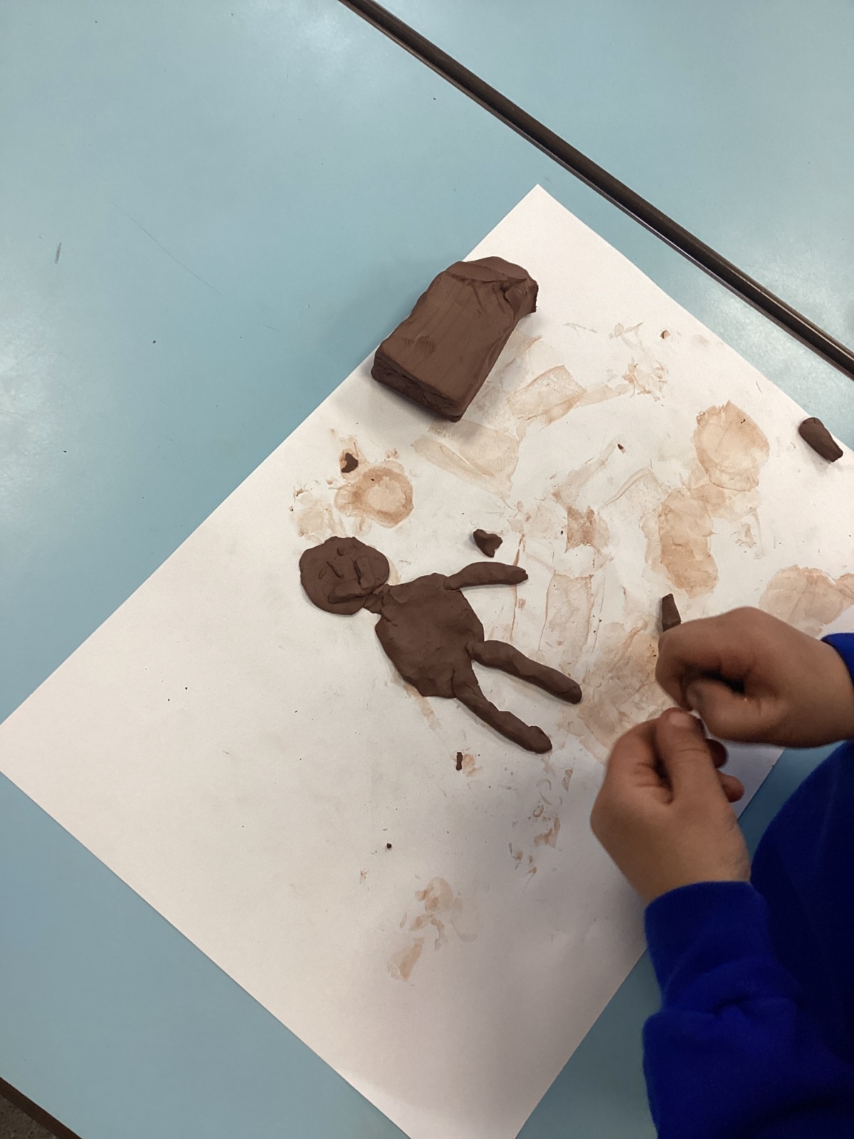 Year 1 have been showing their previous learning on the human body by making bodies out of clay and describing to their teachers what the body parts do and which senses they match with.