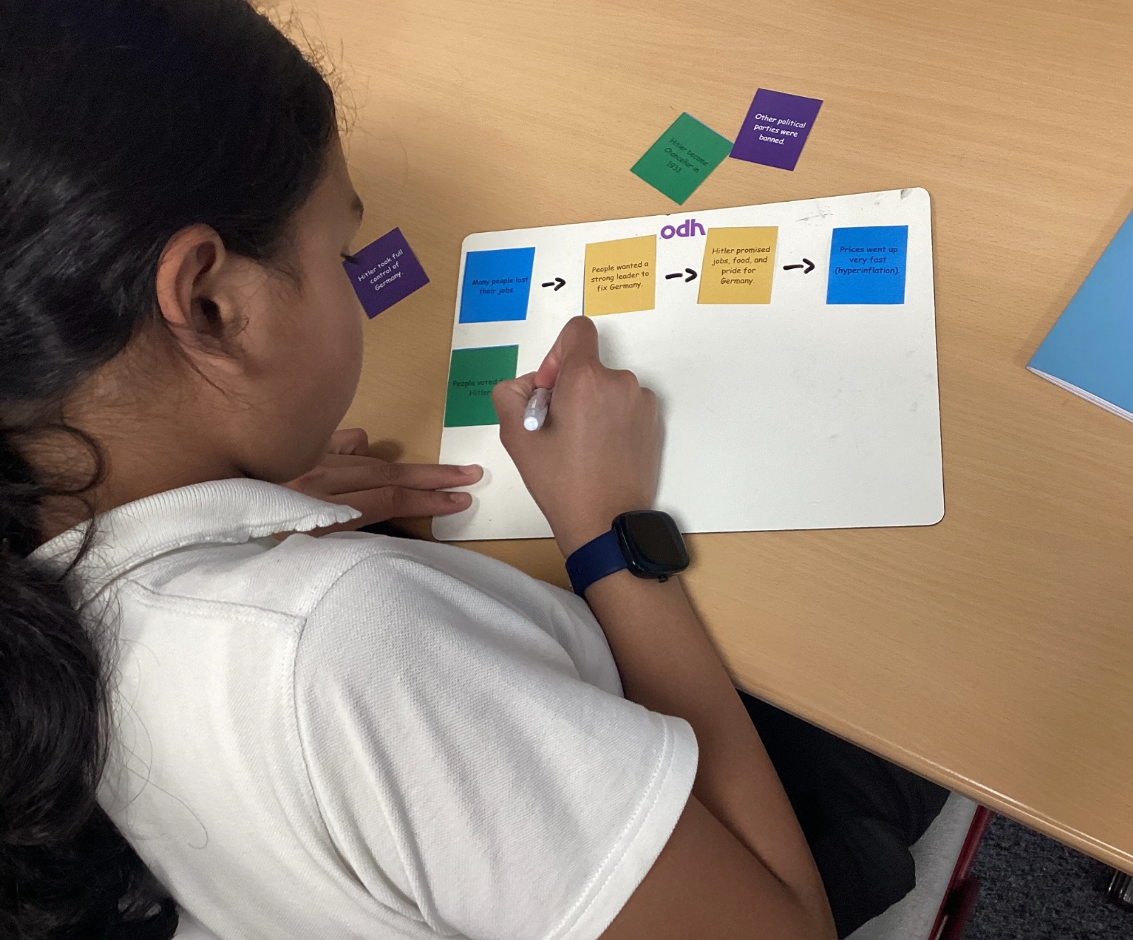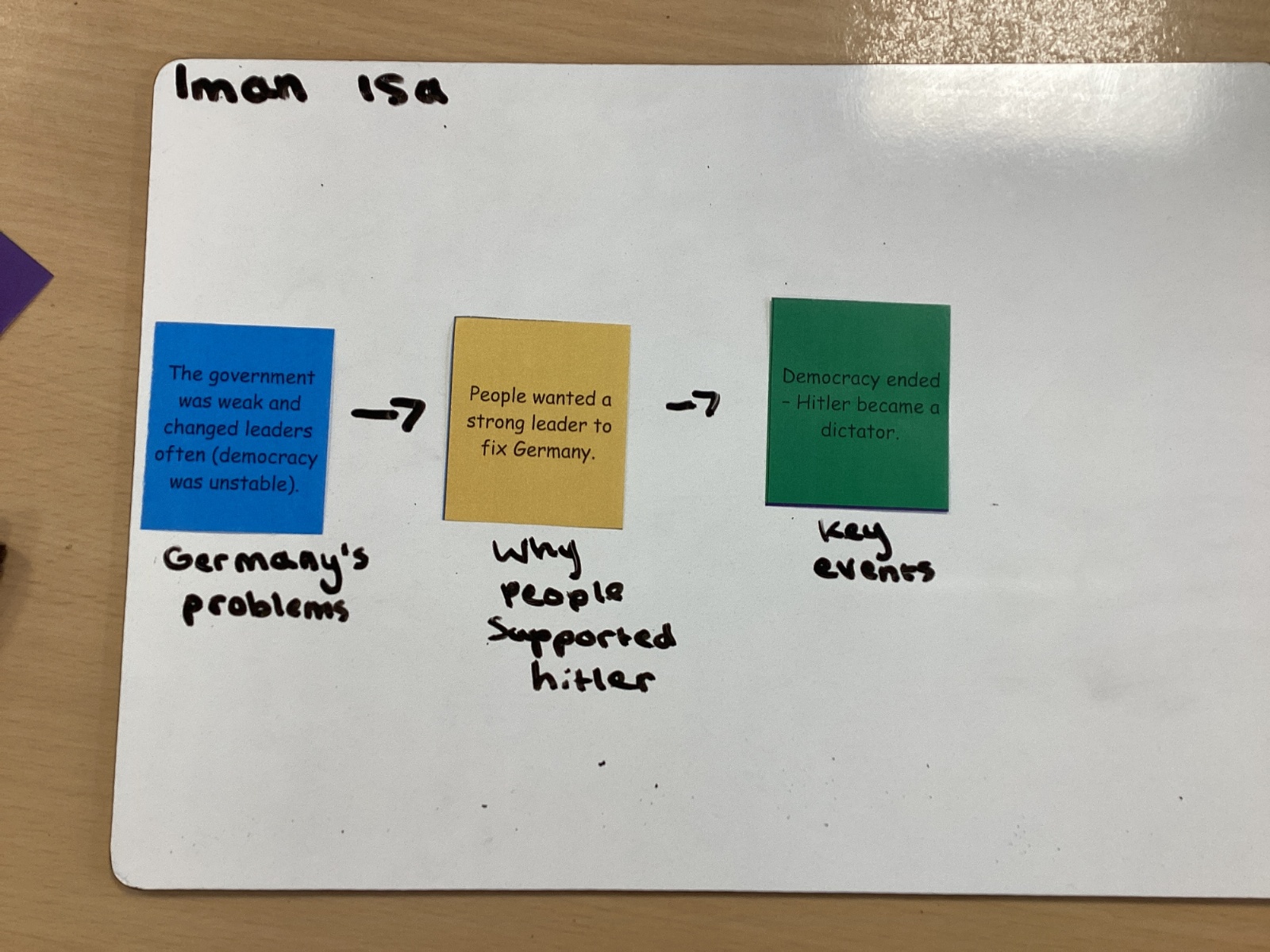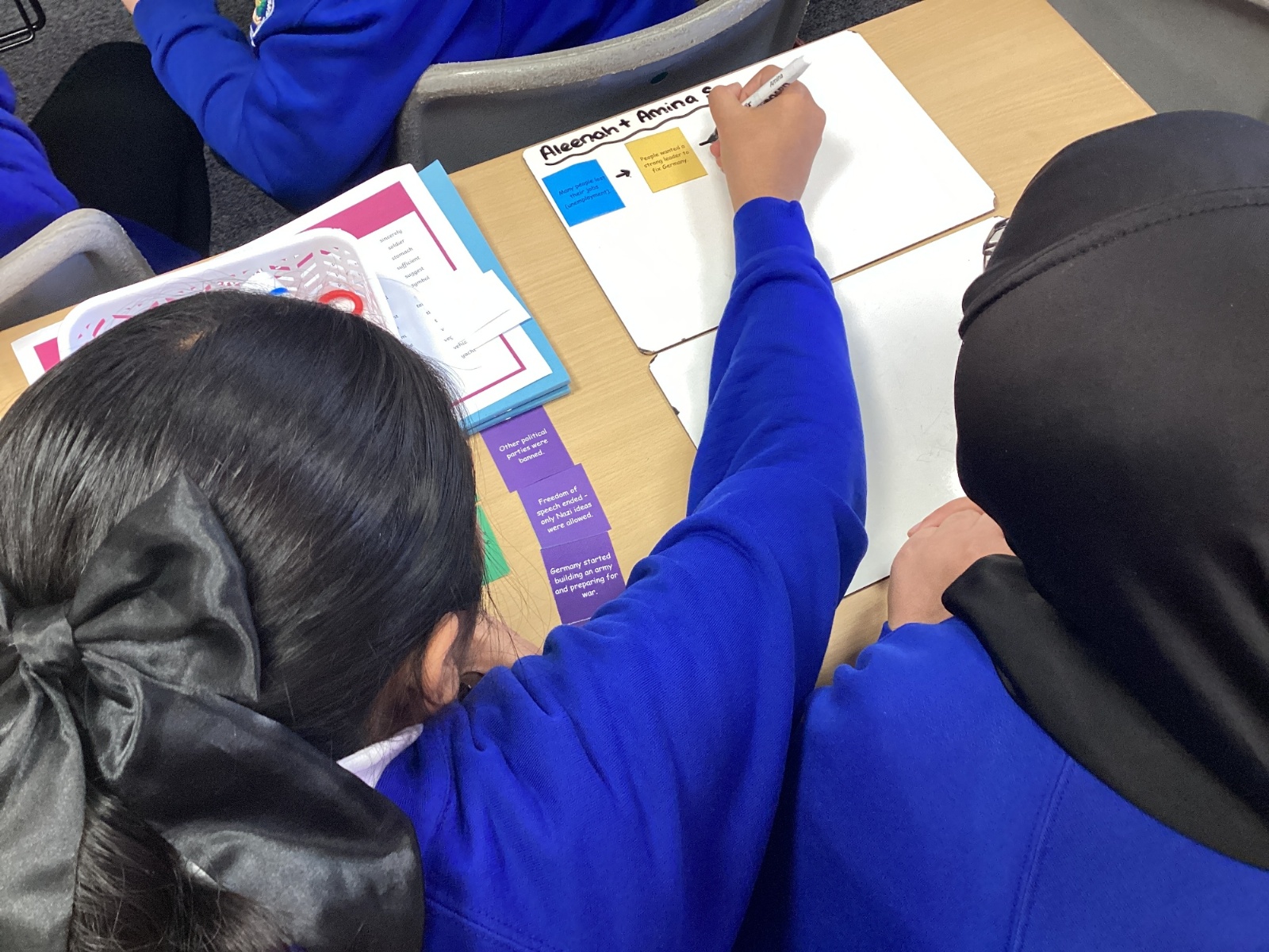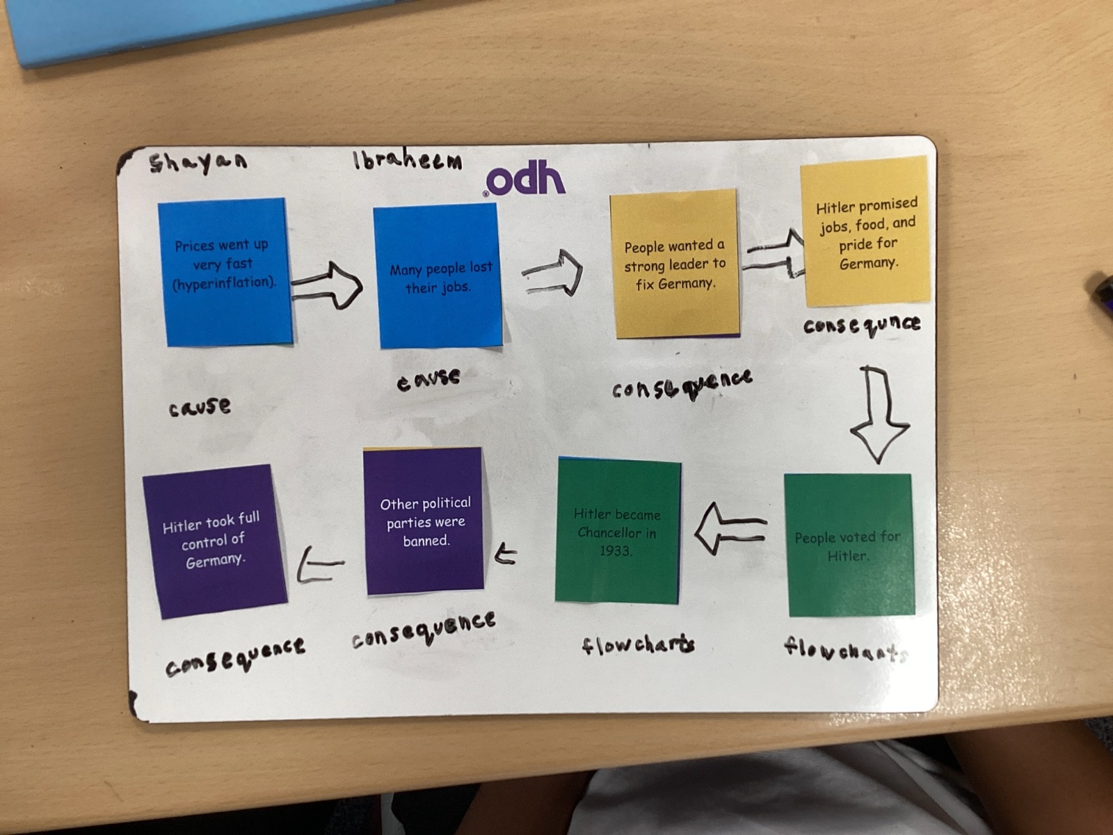 6K have been looking at the reasons why Hitler came to power. We looked at a variety of events during the 1920s and 1930s that all played a part in Hitler eventually taking control. The children then looked for links between the different events, making cause and consequence chains.