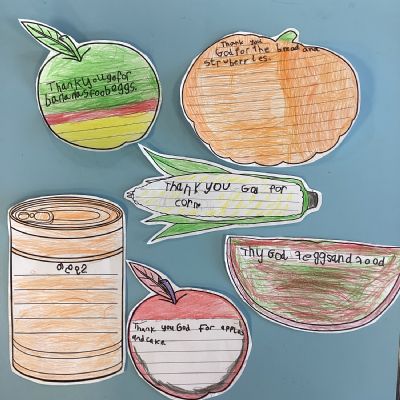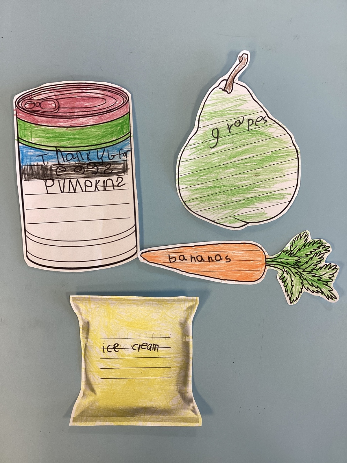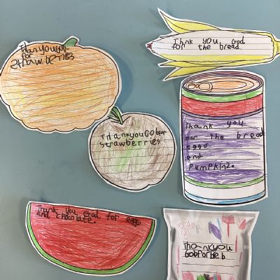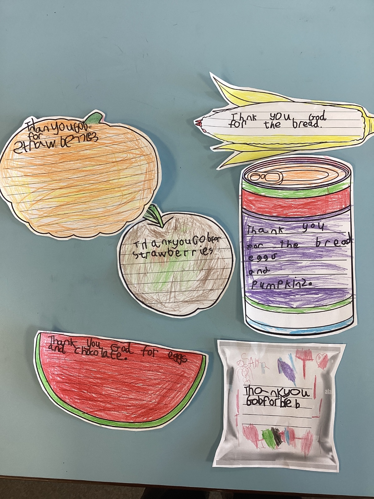 The children learned that Christian’s celebrate Harvest. They celebrate by praying and singing and also by collecting food for those that are less fortunate.