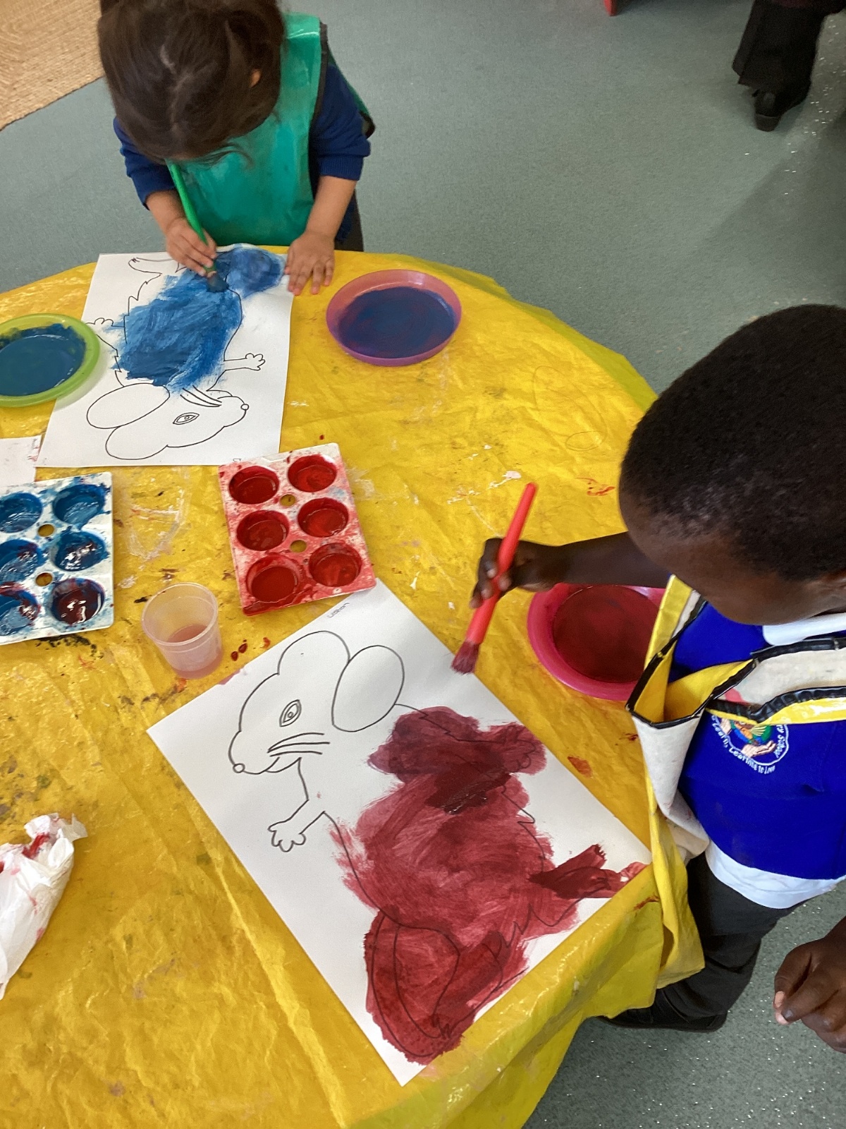 This week, we shared the story Mouse Paint and had lots of fun experimenting with colour mixing to make new colours. The children have also been busy painting their own mouse pictures.