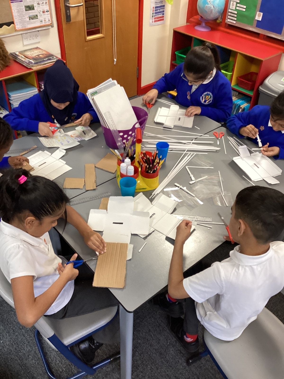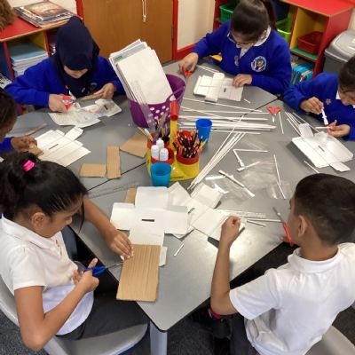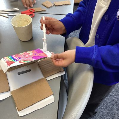 The children practised making nets from card and developed their skills in measuring, cutting, scoring, and assembling 3D shapes. Using these skills, they designed and made money boxes for a chosen user and purpose. Finally, they evaluated their finished products, reflecting on how well they met their design criteria.