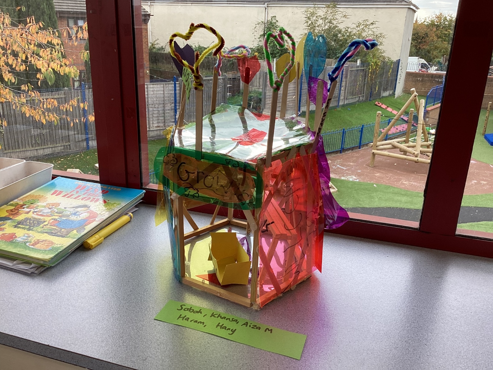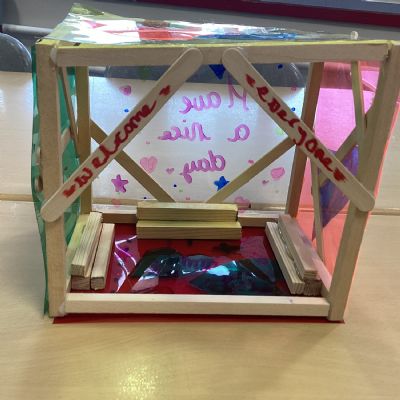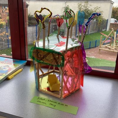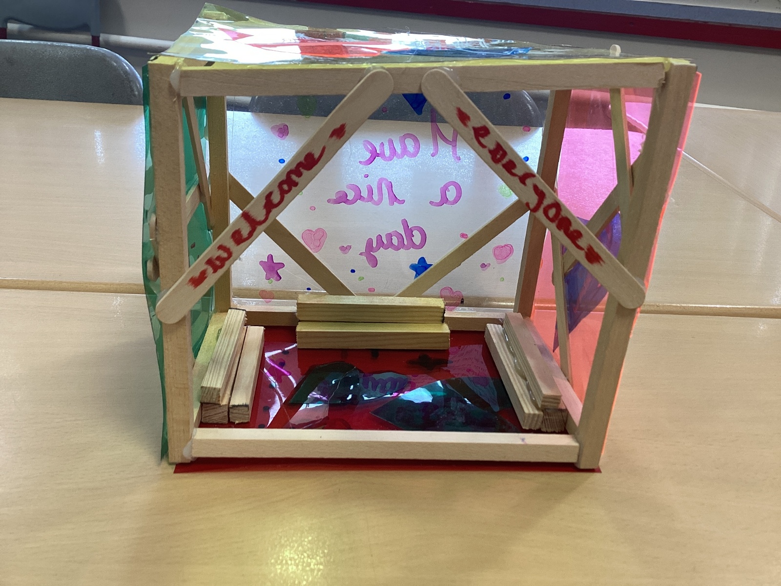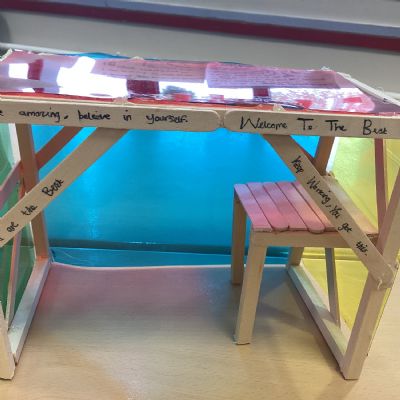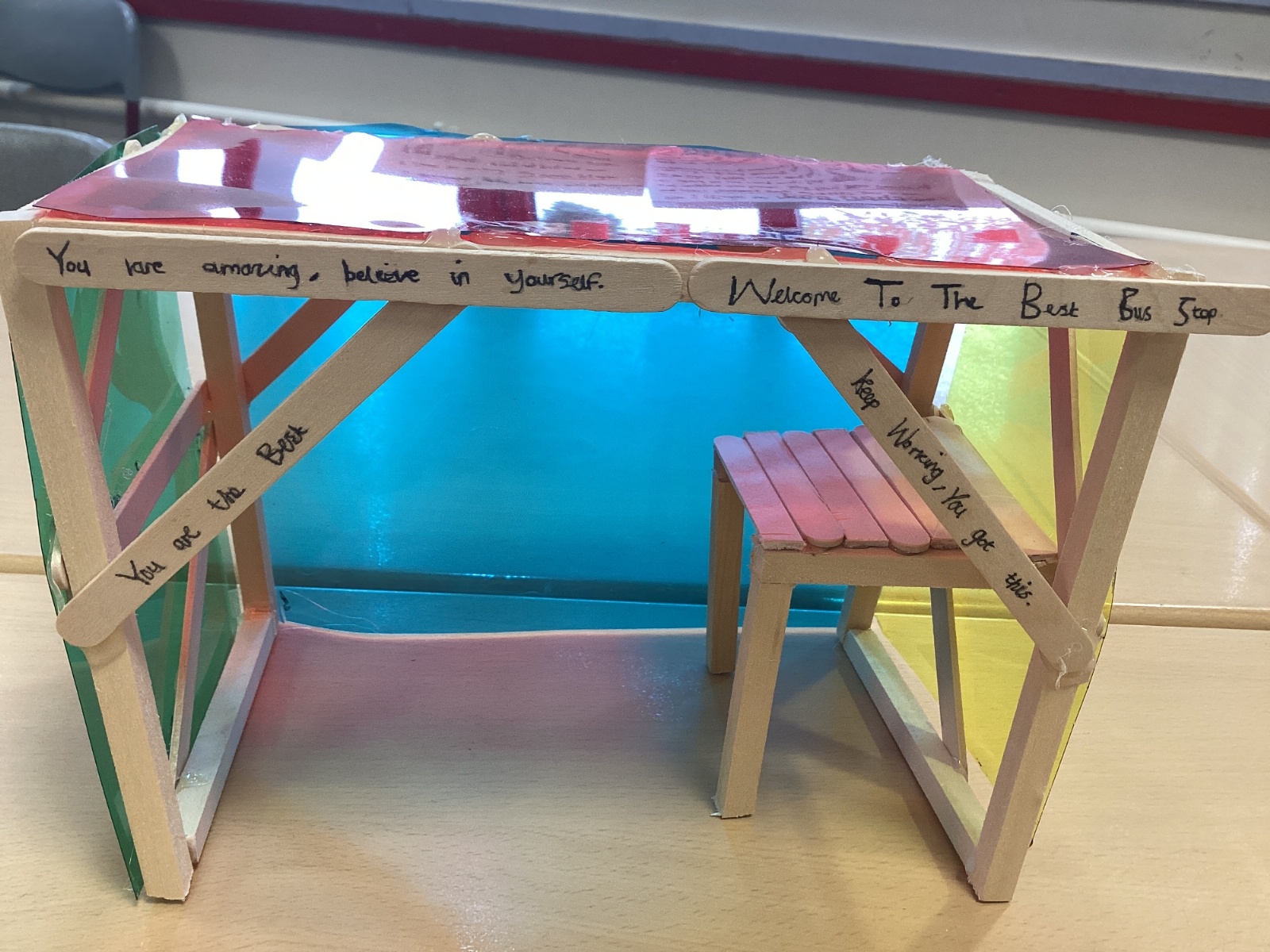 During DT week, Year 5 were creating frame structures. We were given the brief to create bus shelters for the people of Shelton. Our inspiration was the artist, Morag Myerscough, who creates vibrant, inviting structures that range from bandstands to stage and even play areas. After planning out our designs, we worked in groups over several days to measure, cut, glue and finally decorate our creations. We all worked really hard and are incredibly proud of our work.
