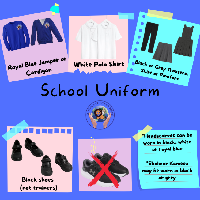 • Royal Blue Sweatshirt/Cardigan with the school logo available from 'National Schoolwear Centres Hanley'